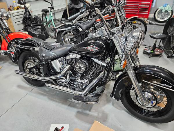 2011 Harley Softail Heritage Black, 7700. Miles. 6 speed, fuel injected, , ABS brakes, original leather saddlebags, LED Lights, quick release windshield, Custom Air Cleaner, .needs nothing, clear...