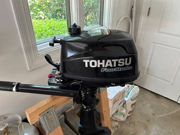 2017 Tohatsu 6HP, 4-Stroke outboard motor, Model# 3JE-MFS6CD with auxiliary fuel tank and Owner’s manual. Serviced by Ellis Marine before being put into storage.