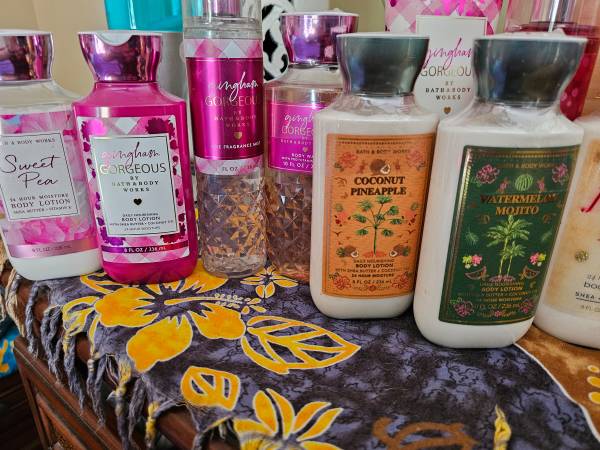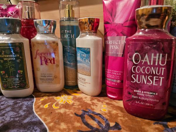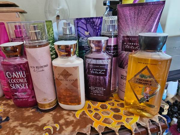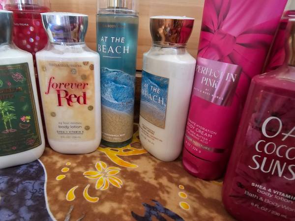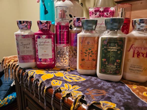 25 brand new bottles of bath and bodyworks. Lotion hand sanitizers, body mists, perfumes. I'm willing to separate the orders. Items must go.